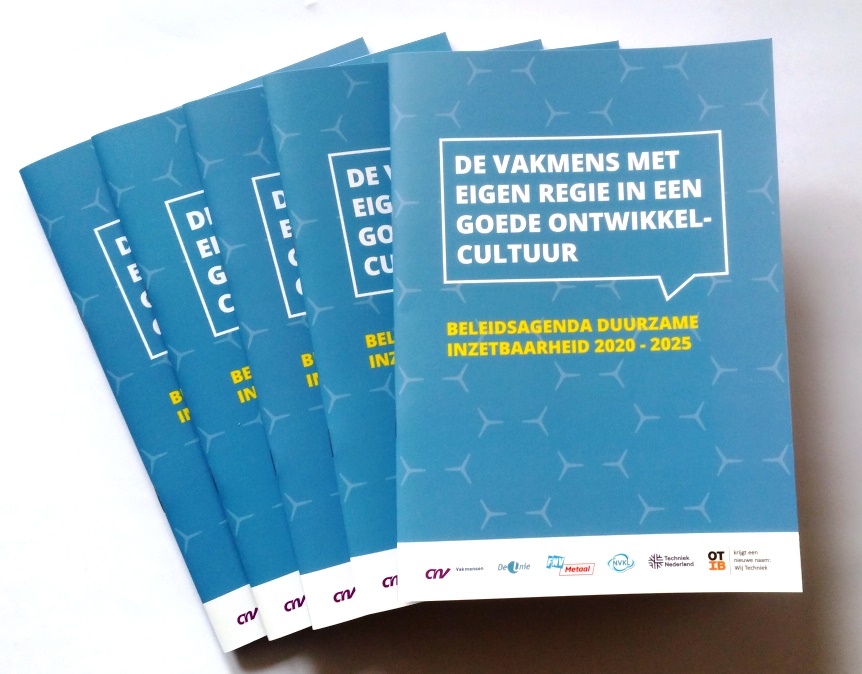 Ontwerpen en produceren van de publicatie ‘De vakmens met eigen regie in een goede ontwikkelcultuur, beleidsagenda duurzame inzetbaarheid 2020-2025’. In deze publicatie staat beschreven hoe OTIB en de sociale partners FNV, CNV Vakmensen, De Unie, Techniek Nederland en NVKL, gezamenlijk invulling geven aan de beleidsagenda duurzame inzetbaarheid.