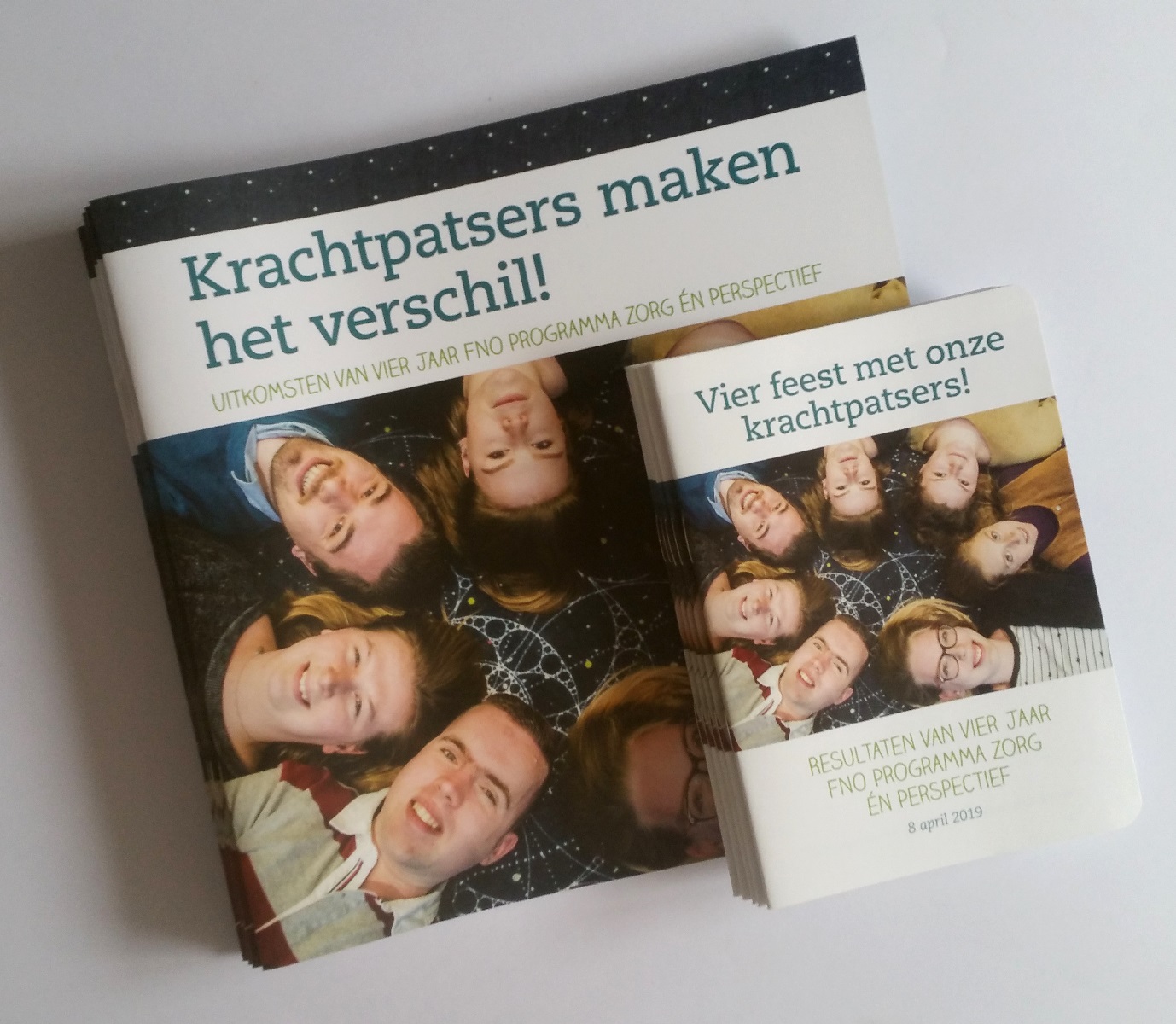 Vier jaar geleden startte FNO Zorg én Perspectief op om het verschil in maatschappelijk perspectief tussen jongeren met een chronische aandoening en hun gezonde leeftijdsgenoten te verkleinen. Een programma niet alleen vóór maar ook dóór jongeren: honderden jongeren hielpen om van het programma en de projecten een succes te maken. Dat succes is gevierd met het event Krachtpatsers. Tijdens dit event kregen de deelnemers o.a. een brochure met daarin een terugblik op dit succesvolle project.