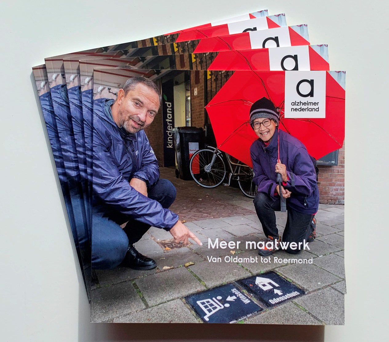 Brochure voor Alzheimer Nederland waarin mensen met dementie en hun mantelzorgers centraal staan. Veel mooie voorbeelden